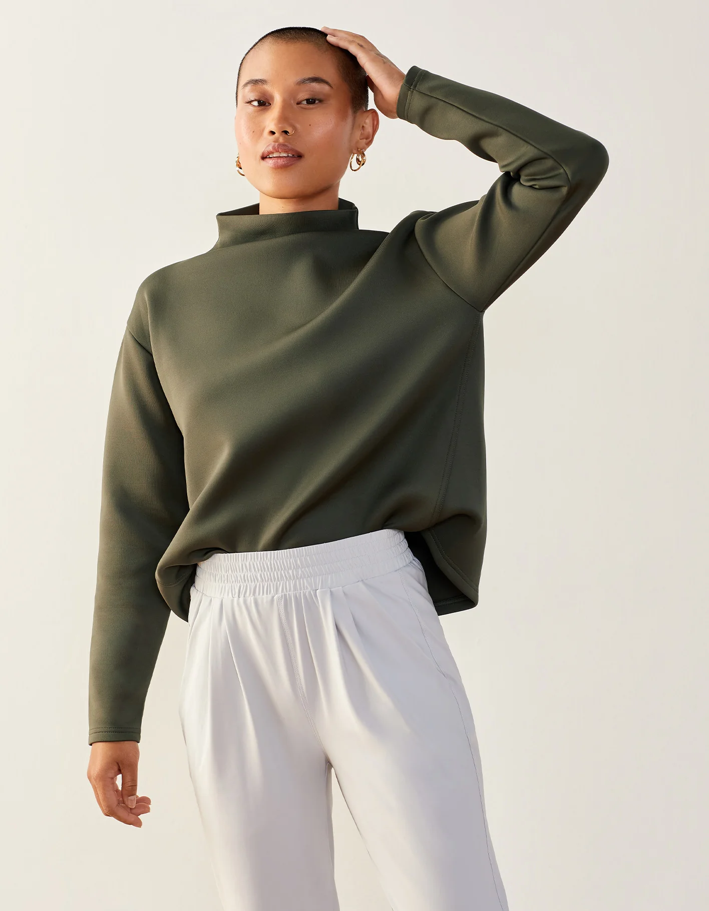 What makes Like A Boss a luxury sweatshirt? The neoprene-like fabric is made of recycled polyester and features a high neck to take you from yoga to the office.Â