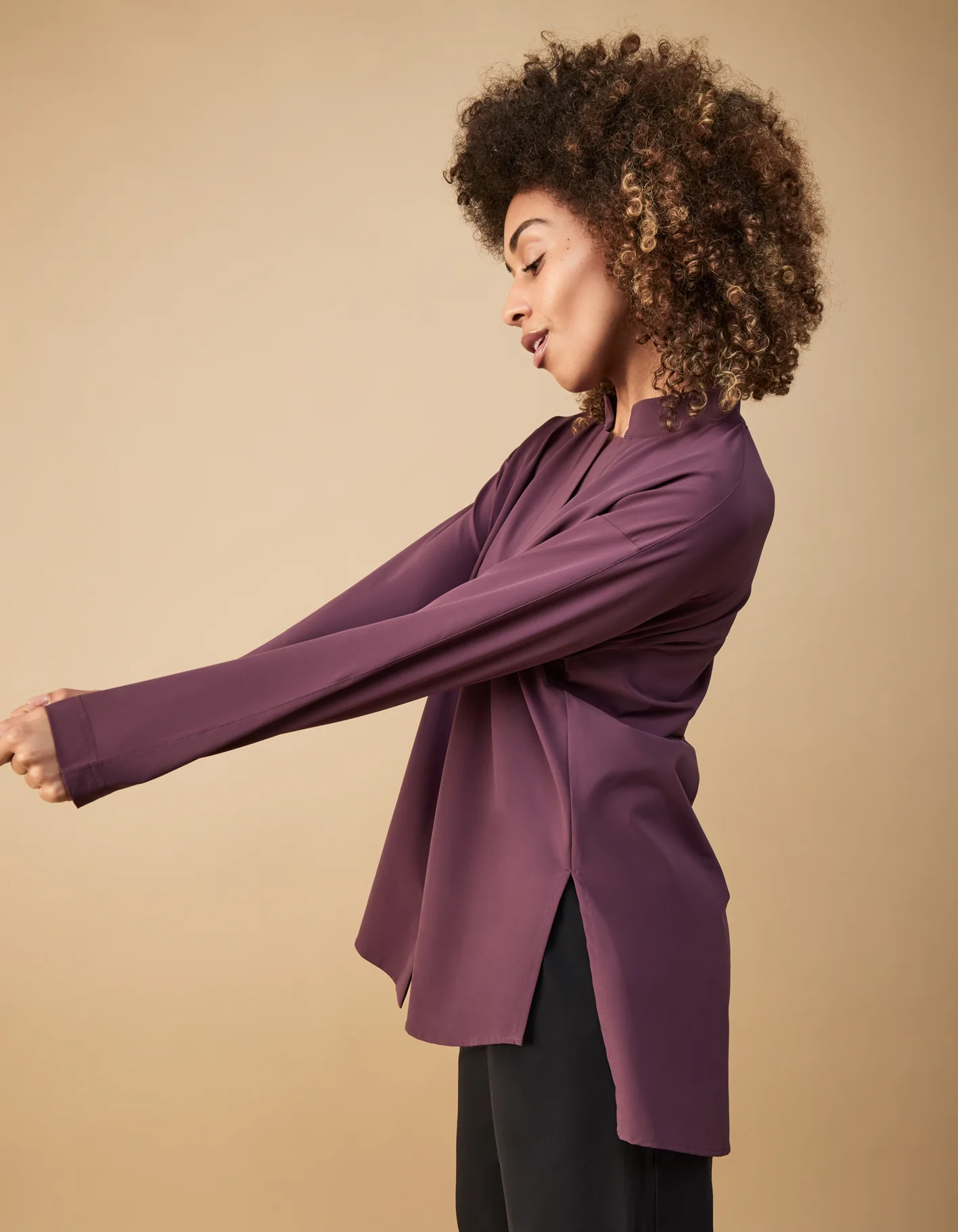 The most flattering button up you'll ever own. This modern twist on a boyfriend shirt features a relaxed silhouette, a chic mandarin collar, and a silky hand-feel.