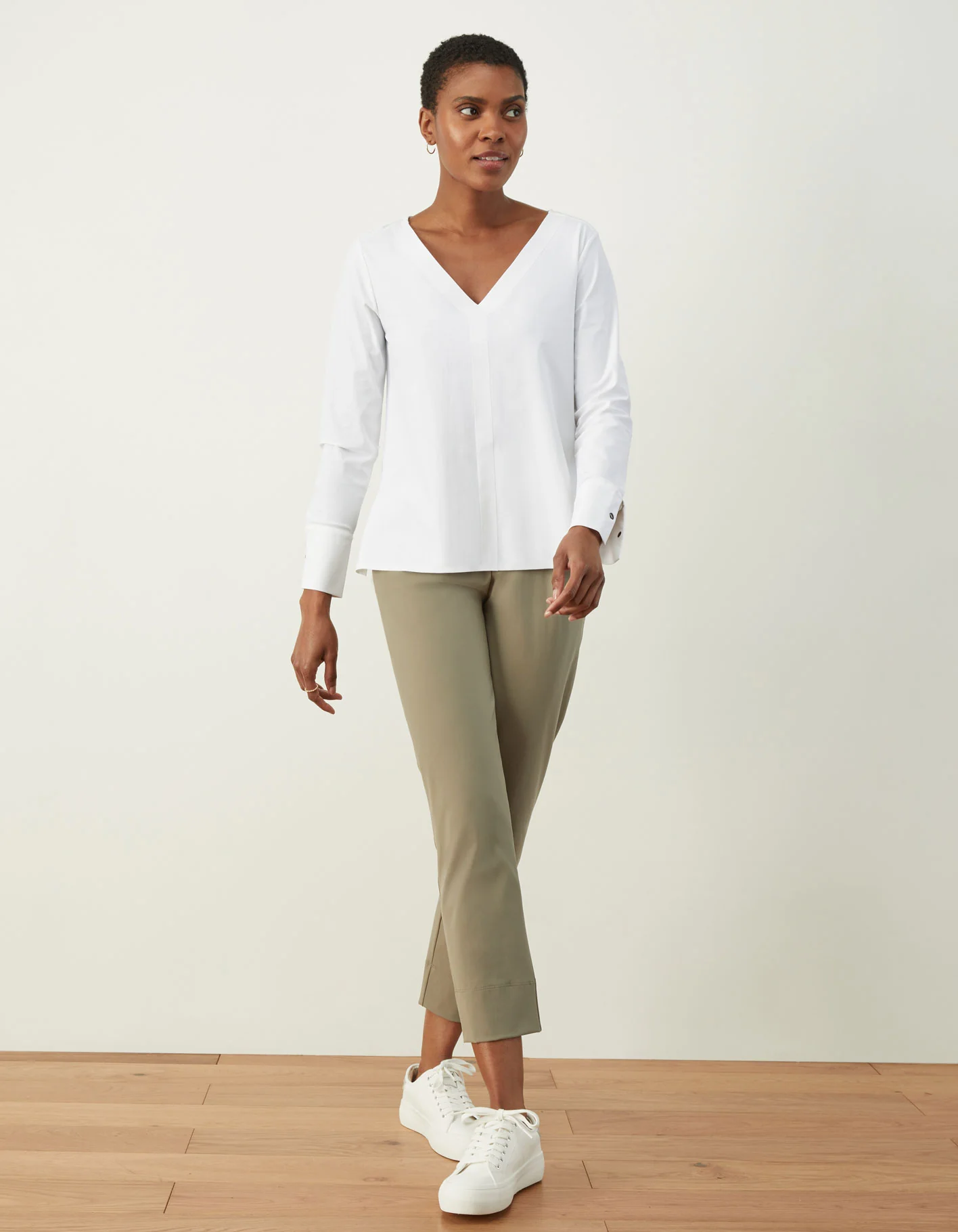 It's a best seller for a reason, the Something Tailored is the women's v-neck top of your dreams. The side slits make it easy to tuck into work pants, while the oversized cuffs can be rolled up for a more casual look.